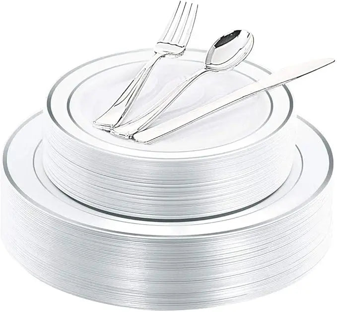 25-piece Disposable Rose Gold Plastic Tableware Set