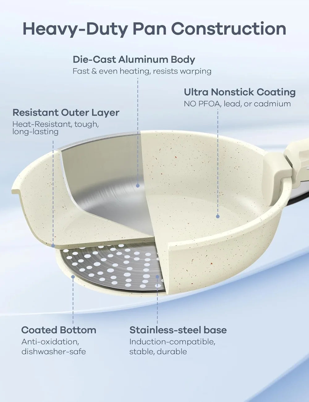 50% Thicker Die-Cast Aluminum: Simmer, Sauté, Sear with Even Heat & No Warping