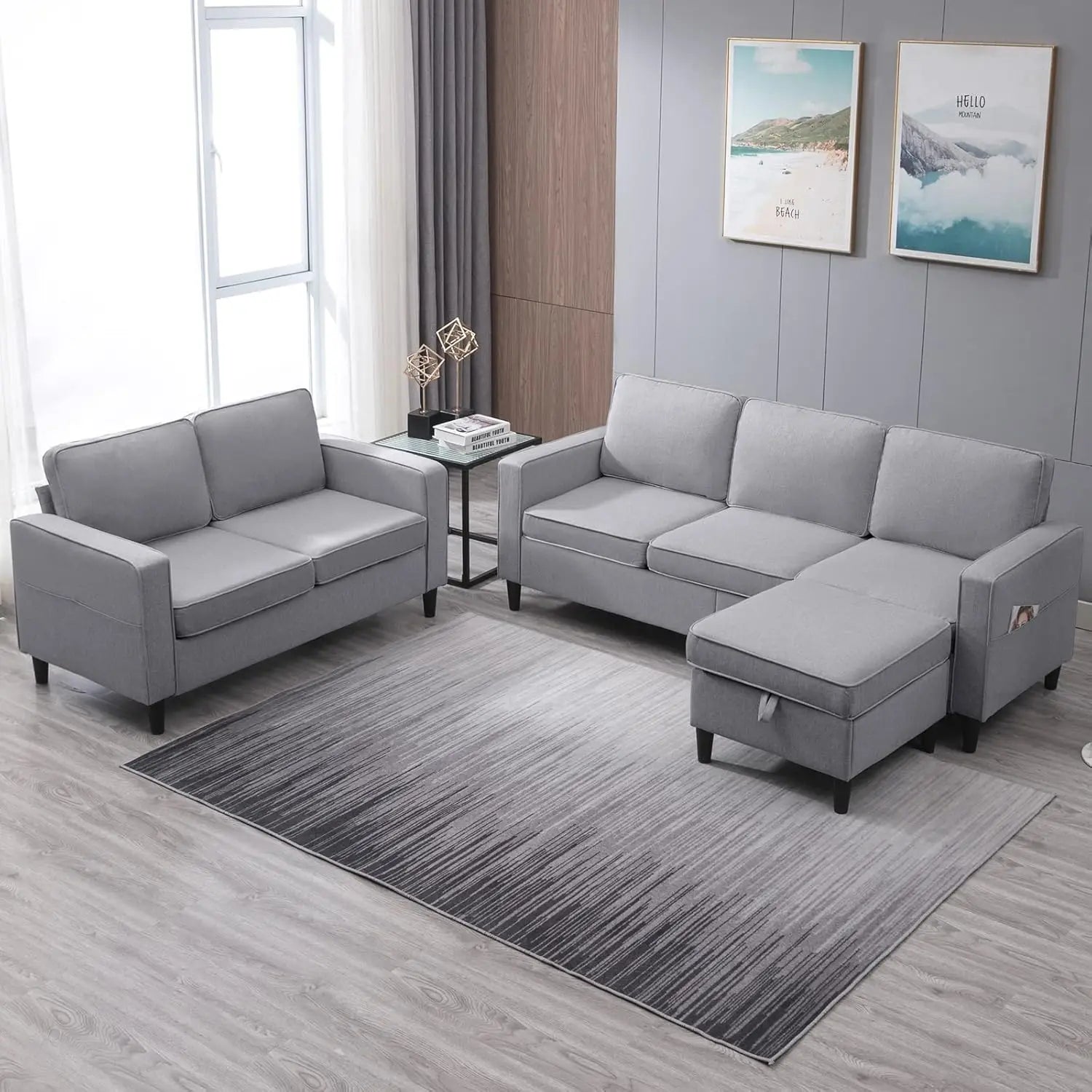 - ✨【Removable Ottoman】The single ottoman can work a coffee table/bench/foot, also put blankets and magazines. The ottomans can be assembled both on the left or right. You can adjust your living room furniture freely according to your preferences by moving the ottoman.