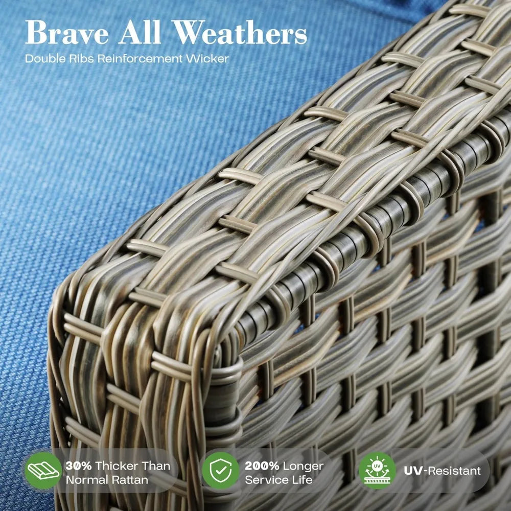 - Sturdy & Durable:The outdoor sectional sofa set is constructed with a solid, powder-coated steel frame that features a cross structure, making it both rustproof and sturdy. Additionally, the hand-woven PE wicker offers high tensile strength and water resistance, ensuring that it can withstand all weather variations for a long service life