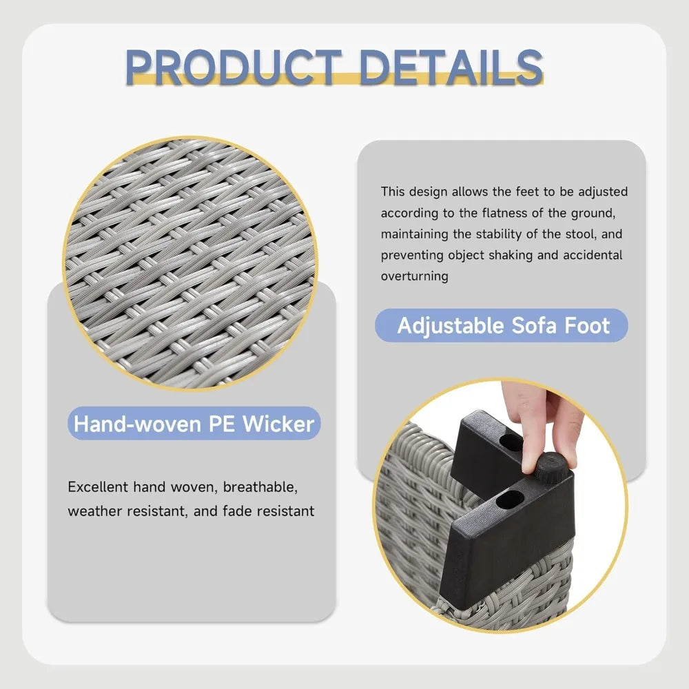 Transform your outdoor space into a luxurious retreat with this complete 6-piece patio furniture set featuring a built-in fire pit table. Crafted from durable all-weather PE rattan wicker and reinforced with an anti-rust steel frame, this collection withstands sun, rain, and stains while maintaining stability and balance. The breathable 250G polyester fabric is UV-resistant and water-repellent for long-lasting beauty. Experience ultimate comfort with plush 4-inch high-density foam cushions that retain their shape and elasticity over time. Removable zipper covers make cleaning effortless, ensuring your outdoor oasis stays fresh and inviting season after season. Centerpiece of the set is the powerful 60000 BTU dual-tube stainless steel propane fire pit table that provides consistent warmth on cool evenings. The windproof cover and decorative blue crystal beads create mesmerizing flames perfect for gatherings. The rattan design seamlessly integrates with the seating for a cohesive aesthetic. Complete configuration includes: 1 three-seat sofa, 2 single chairs, 2 ottomans, and the gas fire pit table - offering versatile arrangements for any outdoor setting from poolside to garden patio. Assembly is straightforward with all hardware included and detailed instructions. The protective furniture cover extends longevity by shielding pieces when not in use. This premium set arrives in four carefully packaged boxes ready to elevate your outdoor living experience.