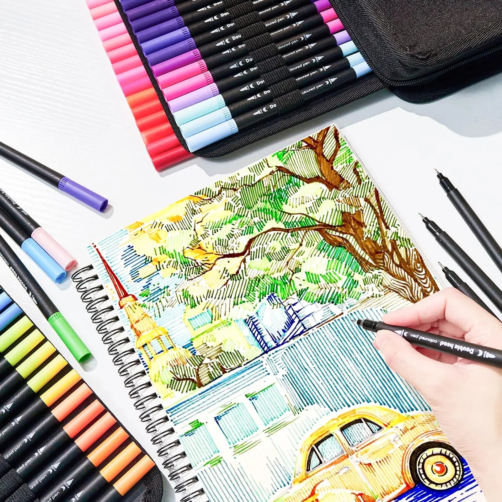 72 Colors Premium Dual Tip Art Markers Set with Foldable Case - Extra Fine & Brush Tips for Adult Artists Drawing, Painting