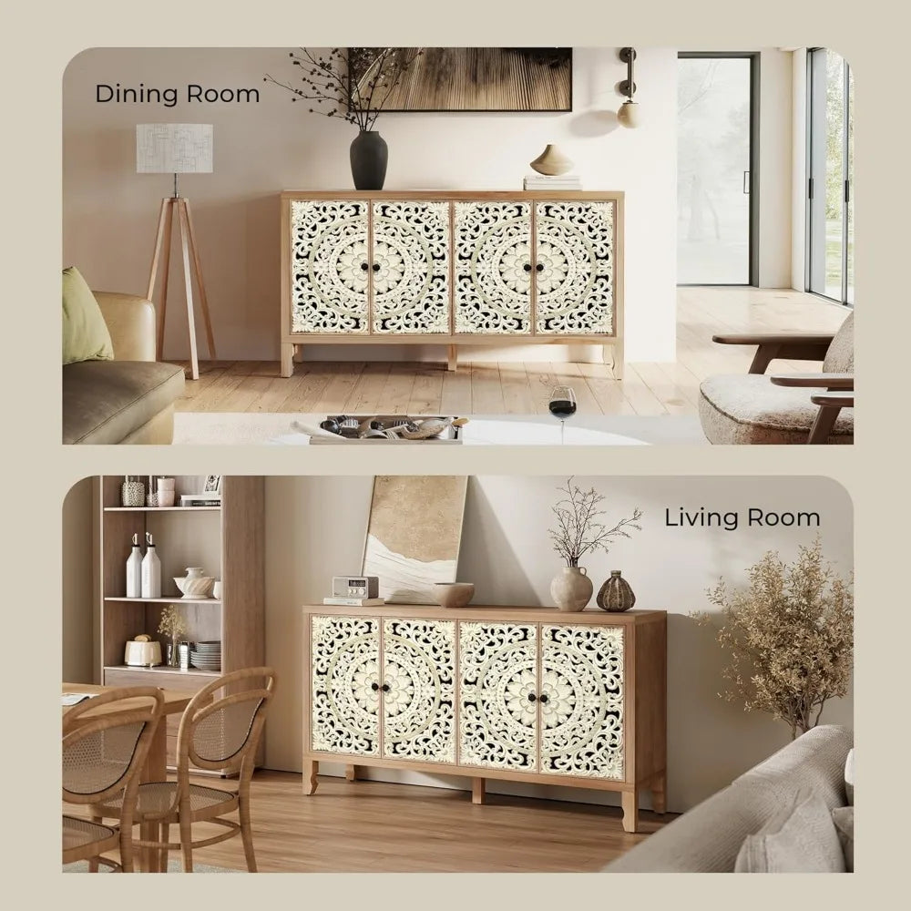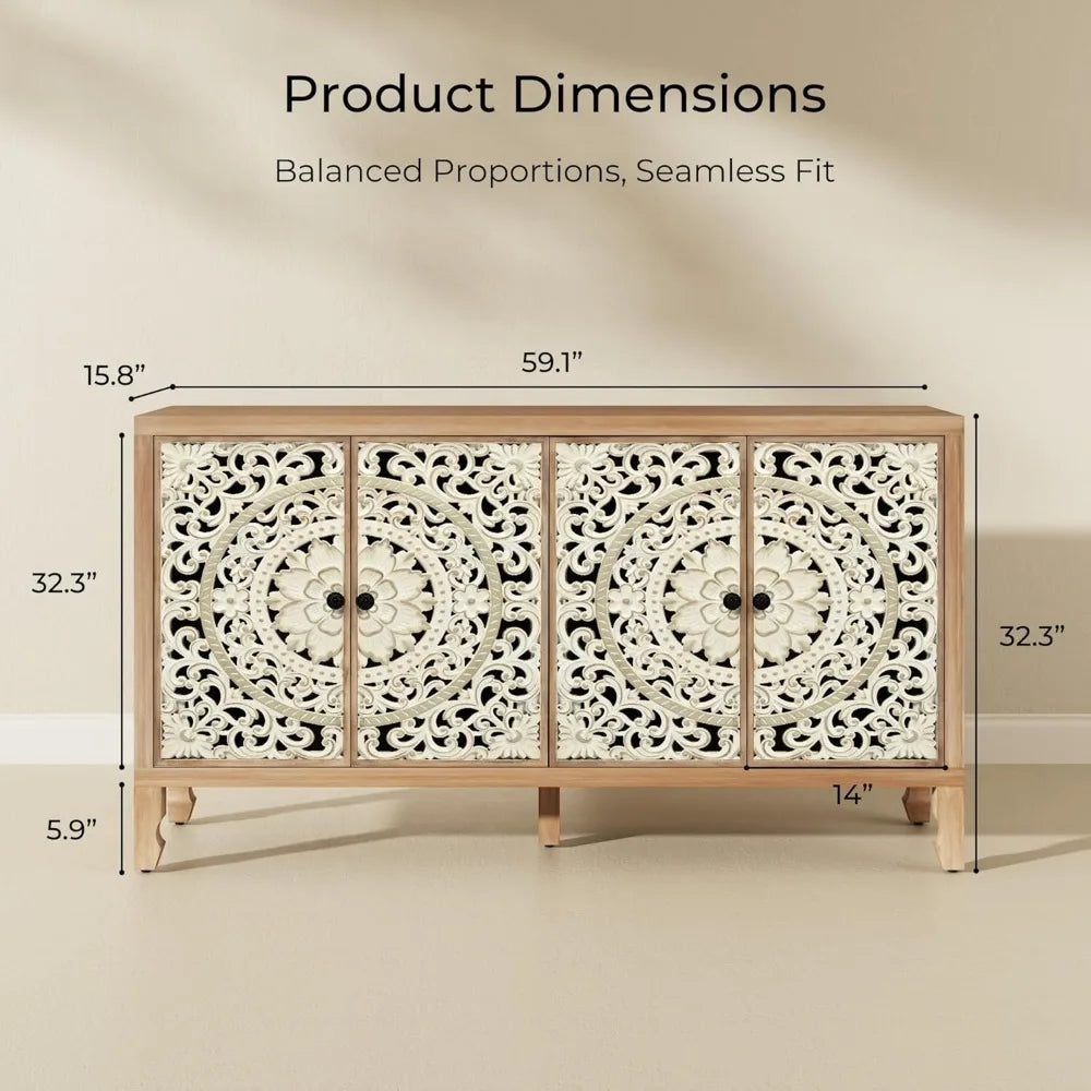 - 【Multi-Purpose & Versatile Design】This buffet sideboard cabinet adapts effortlessly to any room in your home. Use it as a kitchen buffet cabinet with storage, a stylish accent cabinet with doors in the living room, or for organizing accessories in the entryway. Its unique 3D carved pattern complements modern, traditional, and farmhouse styles.The white cabinet features a spacious design that combines style with practicality to meet your everyday storage cabinet needs.