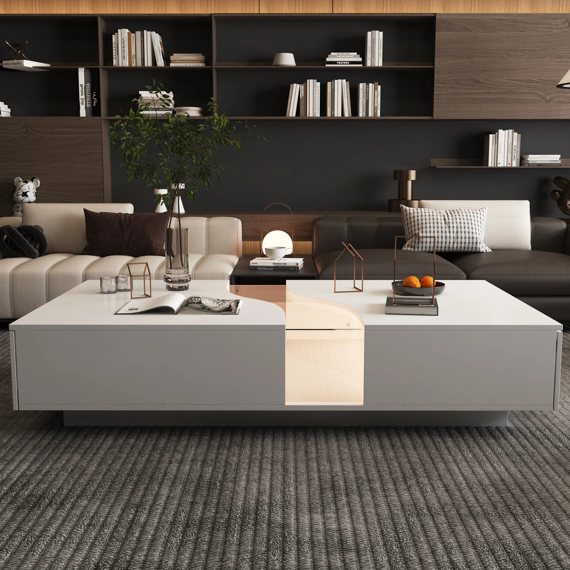 Spacious desktop: The coffee table is equipped with a spacious desktop, providing ample space for various activities. Whether you're drinking coffee, reading a book, or entertaining guests, a spacious surface can provide the space you need.