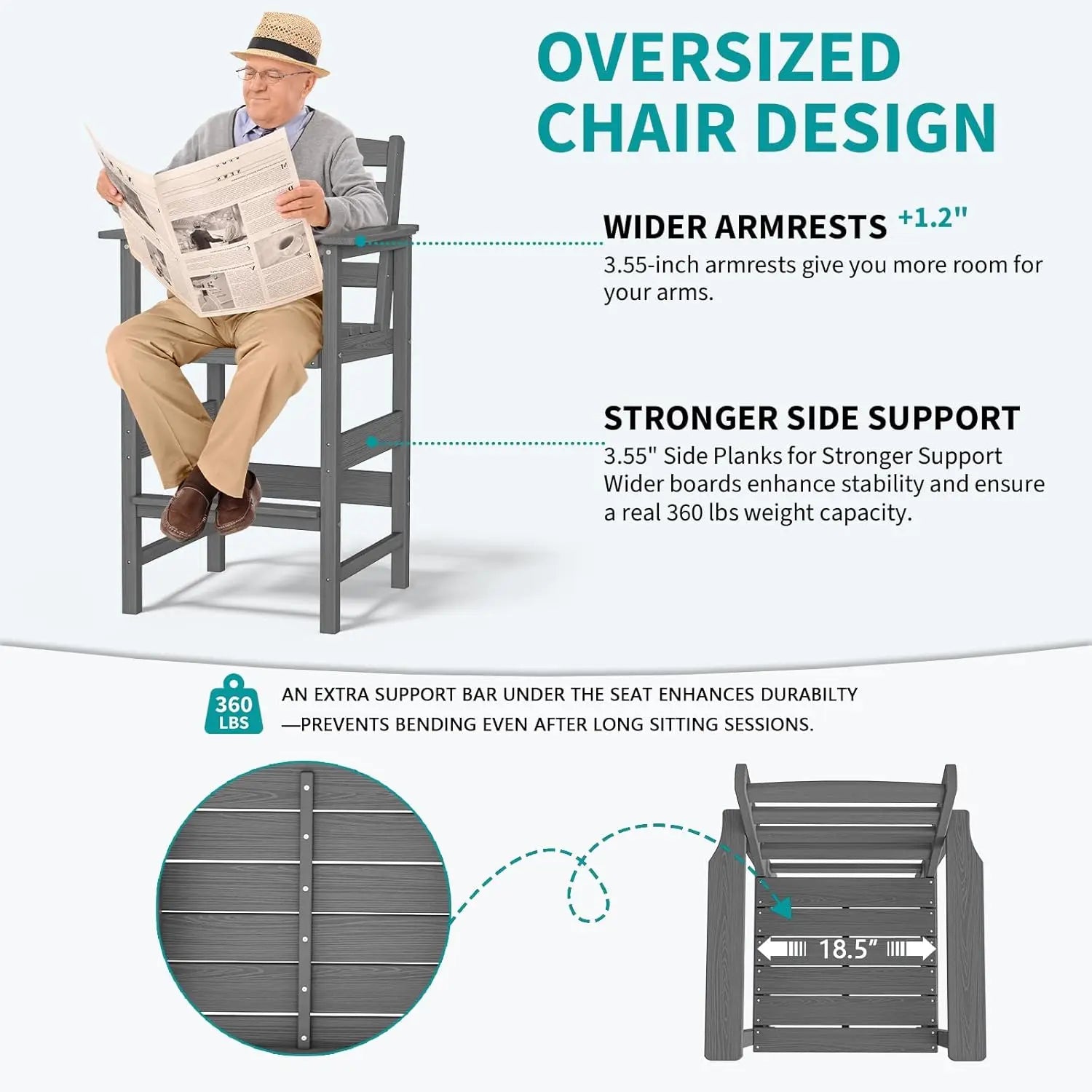 🐳 Reinforced Structure for True 360 lbs Support: Each chair features a hidden support bar beneath the seat and robust 3.55" side planks—engineered to resist bending and maintain structural integrity over time. The result: a genuinely stable and supportive chair that holds up under daily use.